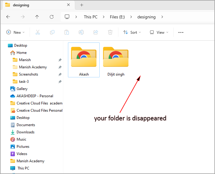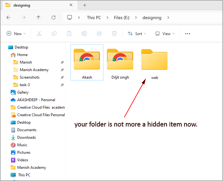 3. Your folder get faded, this means, this folder has become an hidden item. Now you need to disable the option of "show hidden items" to hide it.