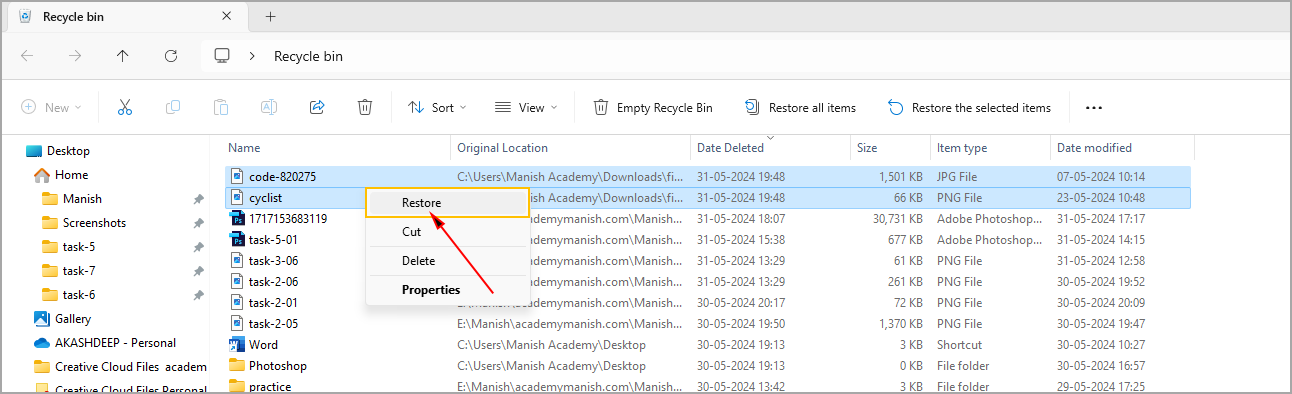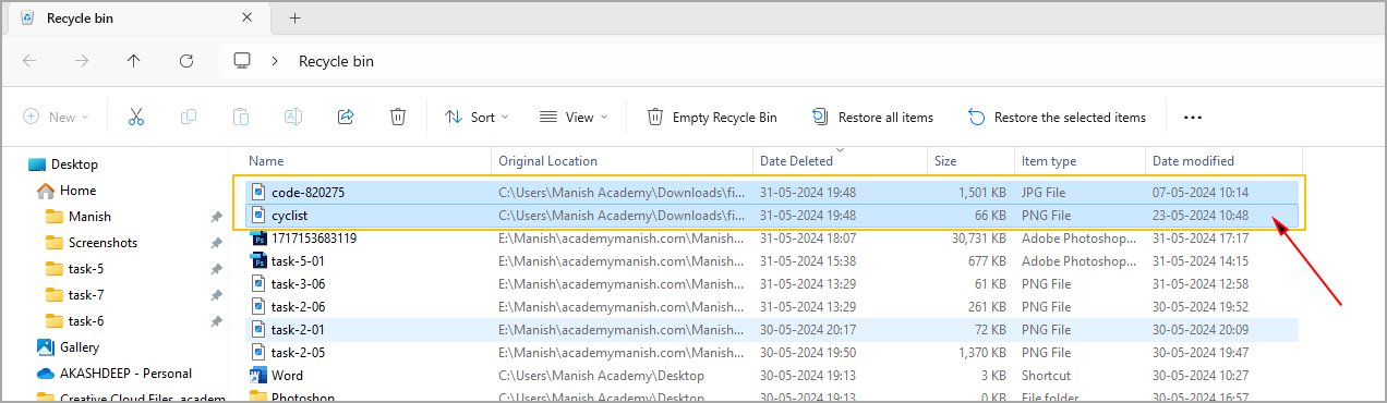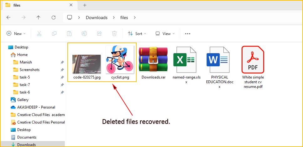 6. Go to the Folder from where the files had been deleted. They will now appear in the folder.
