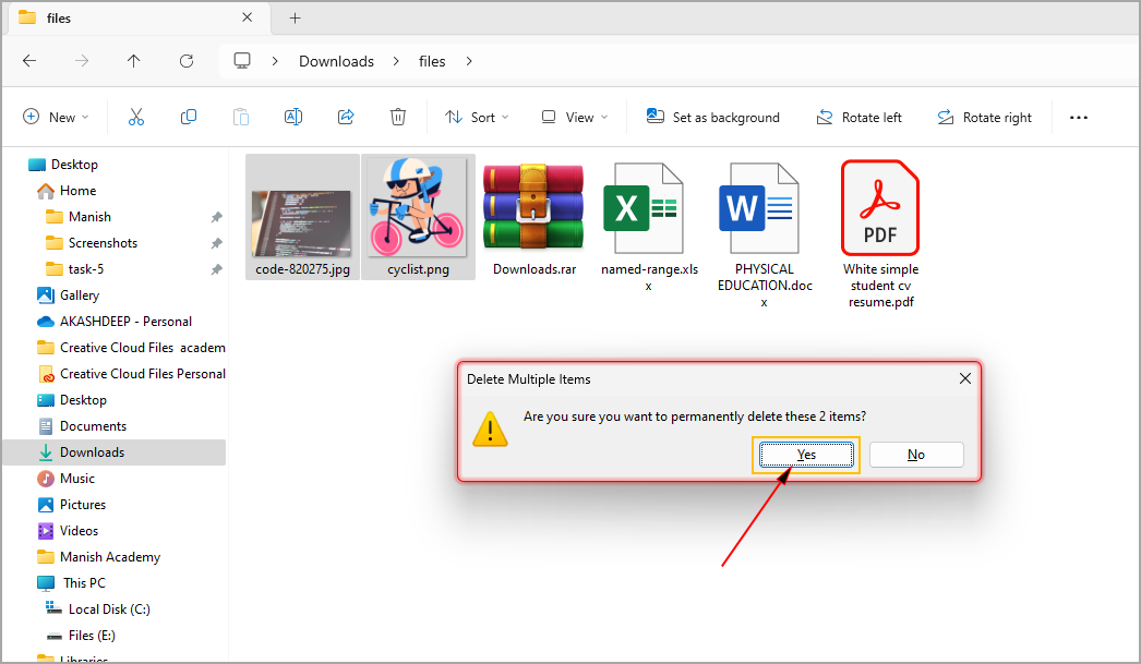 Note: Now, you can't recover these files from the recycle bin. They are deleted permanently.