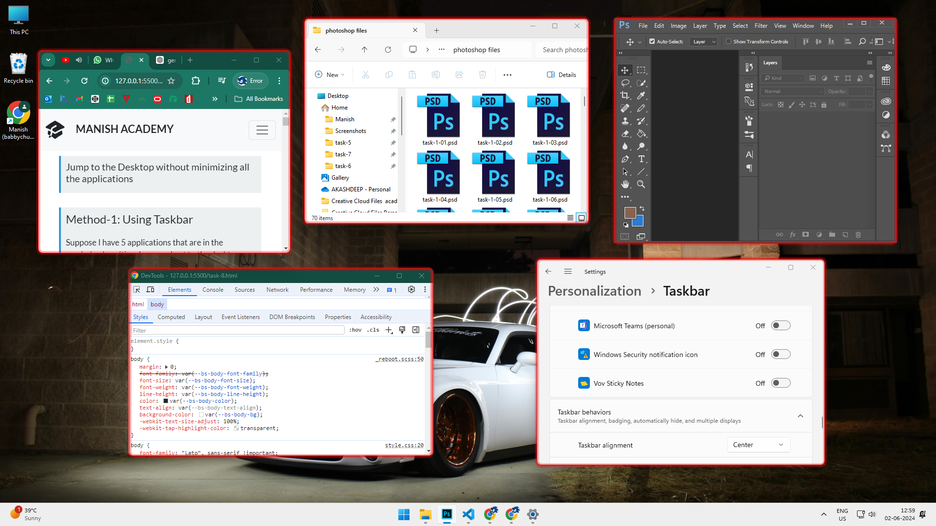 Suppose I have 5 applications that are in the maximised position, how can I get to the desktop without minimising all these applications one by one.