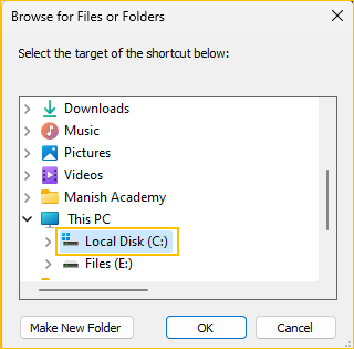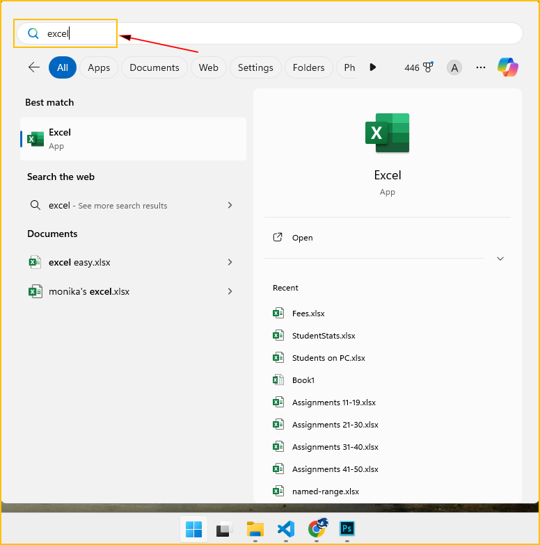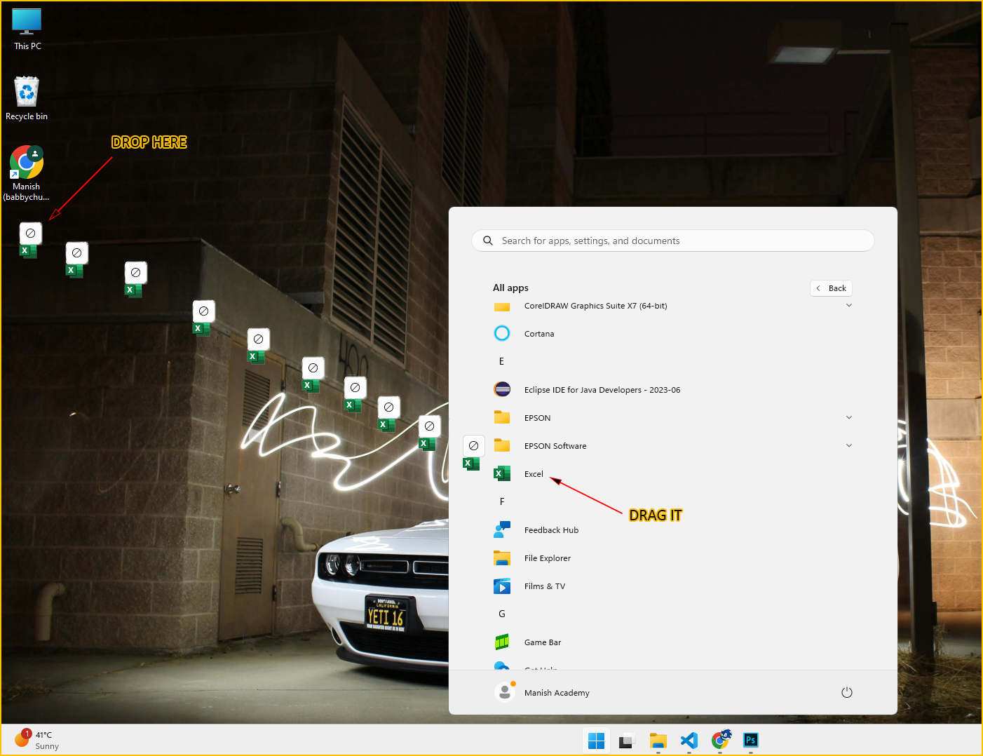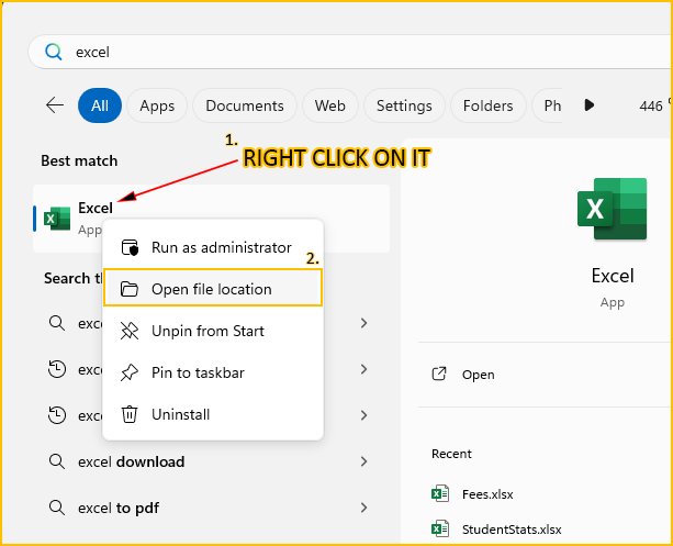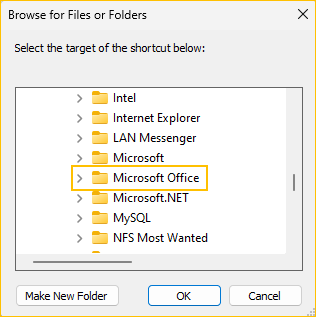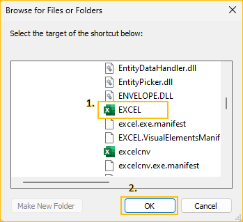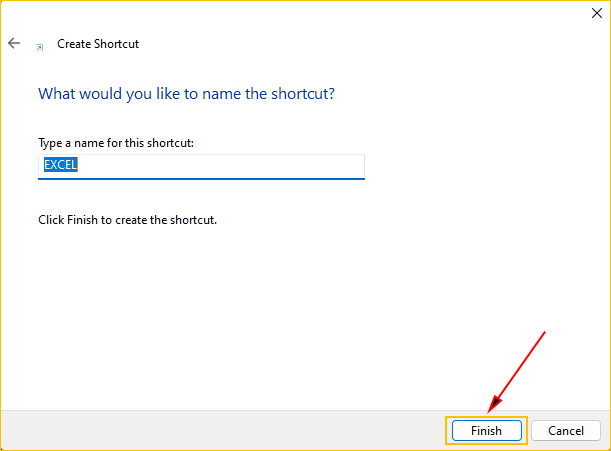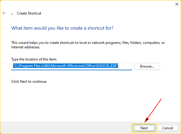 Suppose you want to create a desktop shortcut for MS Excel application.