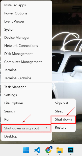 2. Click Shut down or sign out and then click Shut down.