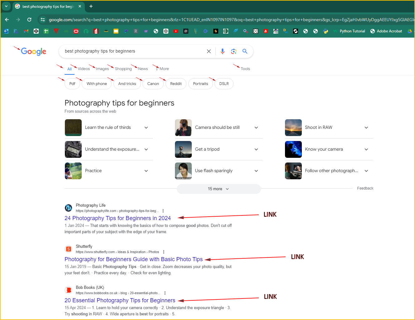 1. First search on Google. (Links are shown with the arrow signs in the below picture)