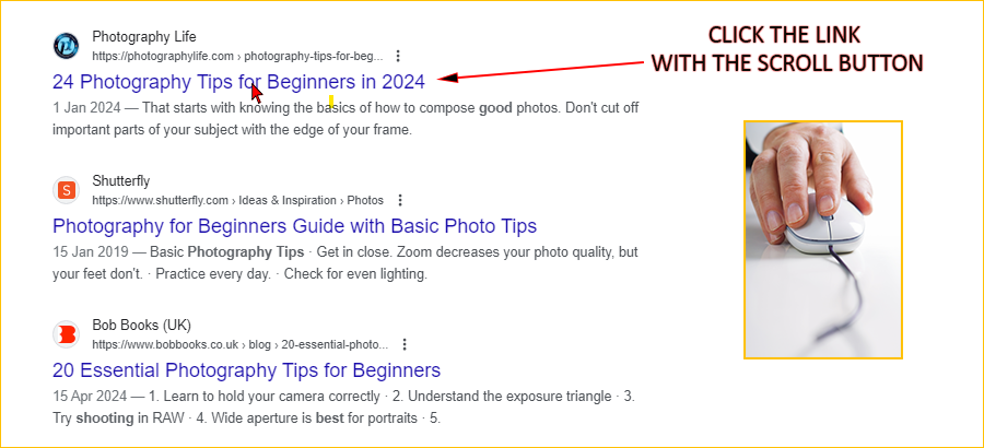 2. Hover over the link and click the link with the scroll button to open the link in a new tab.