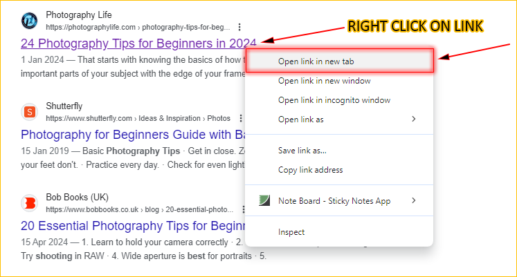 Note: Opening link in new tab allows you to view multiple web pages simultaneously without closing the current page.