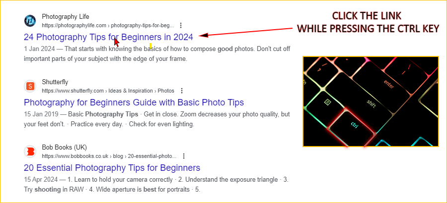 1. Hold down the Ctrl key on your keyboard and then click the link with the left mouse button.