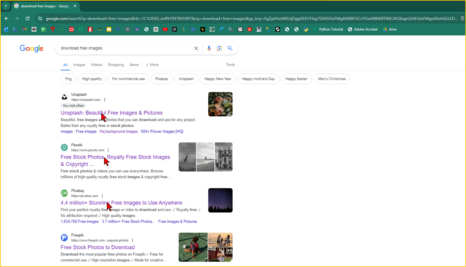 Note: More than one link are opened so that if you wouldn't get your desired image in the first website, you can search for it in the 2nd website and so on.