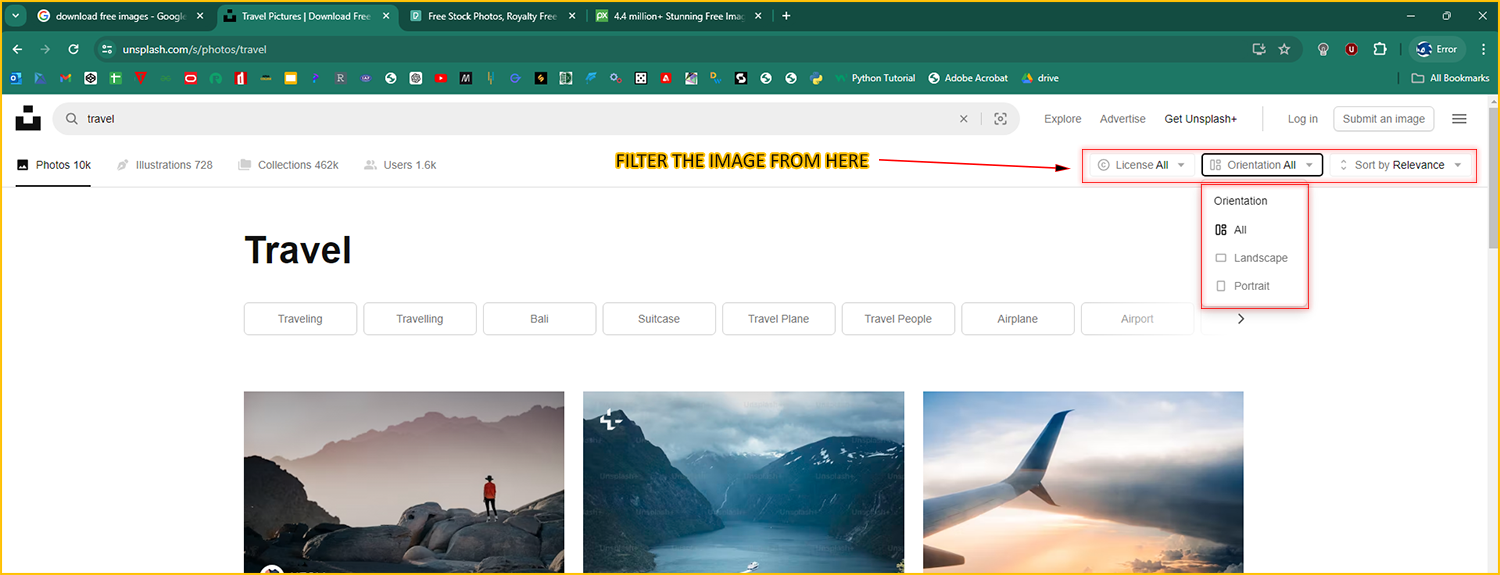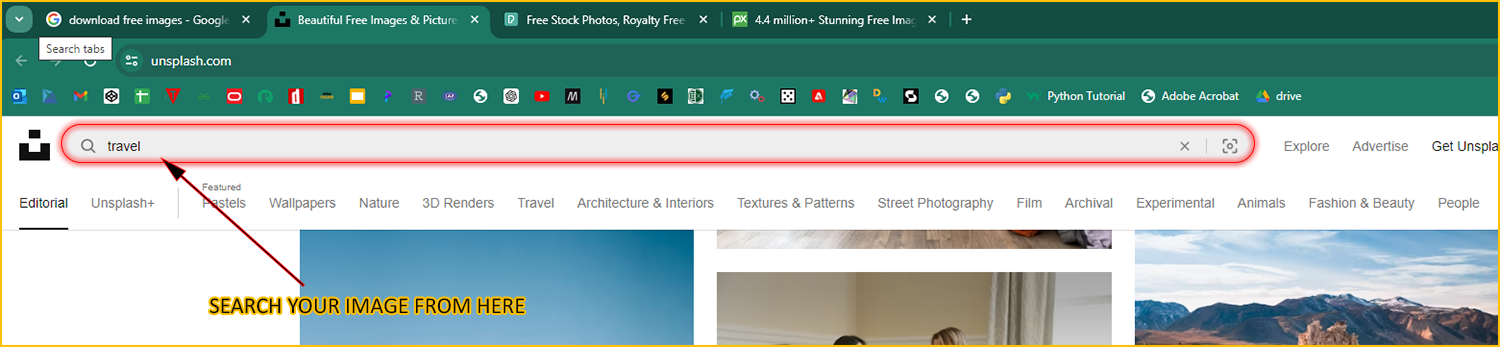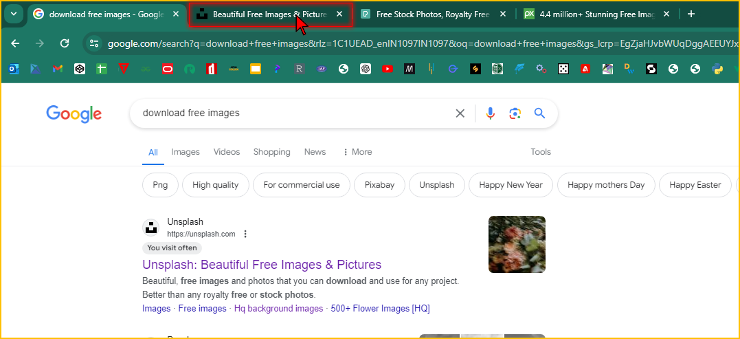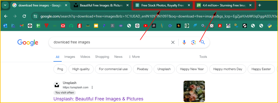 Note: If you don't get the image of your choice in the 1st website, you can search it for in the another websites which we opened at the starting of this tutorial.