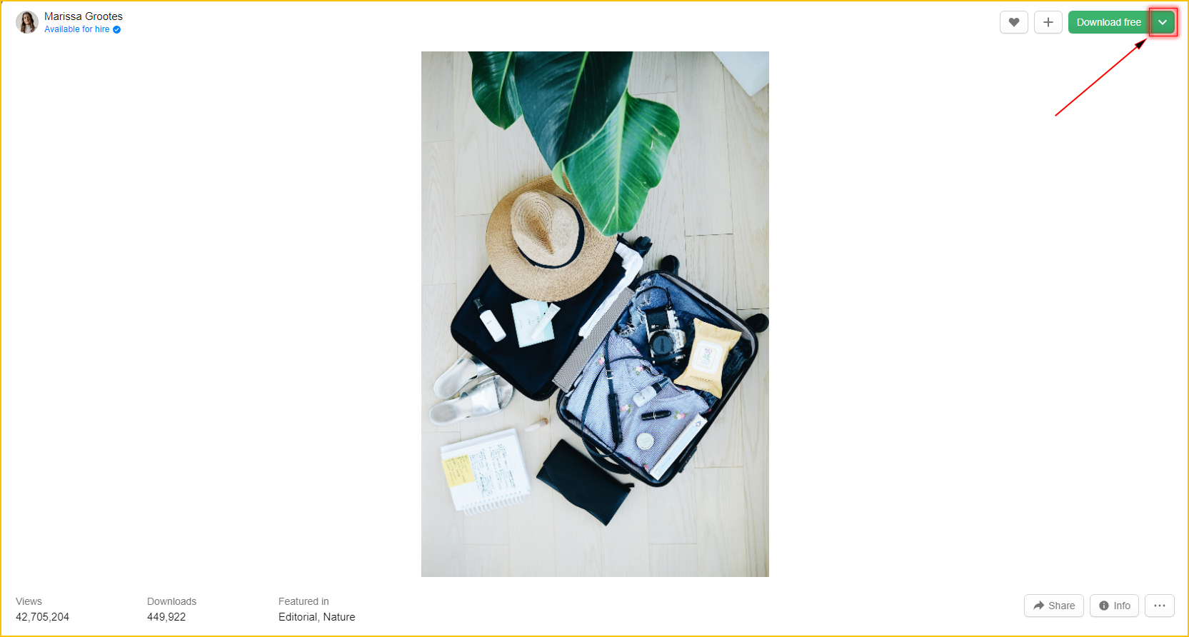 7. Click the down arrow next to the download free button OR you can directly click on the download button also.