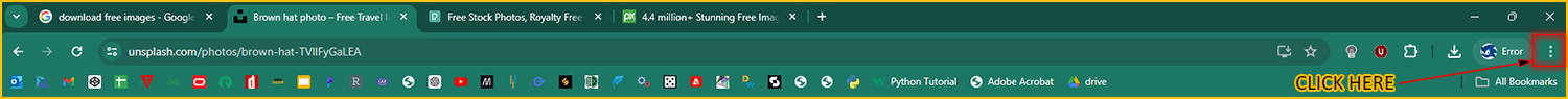 2. Click on the three vertical dots (menu icon) in the top-right corner of the browser window to open the Chrome menu.