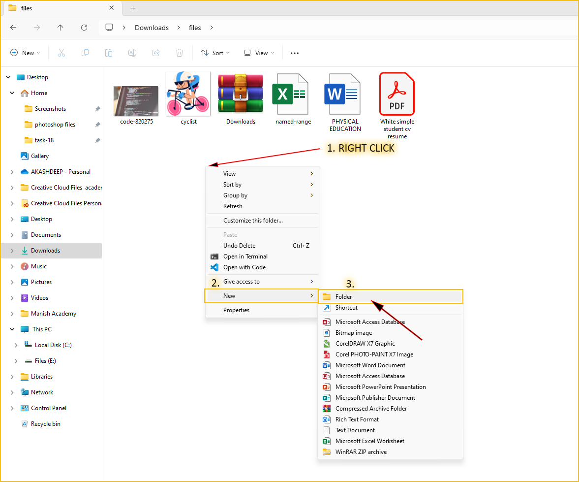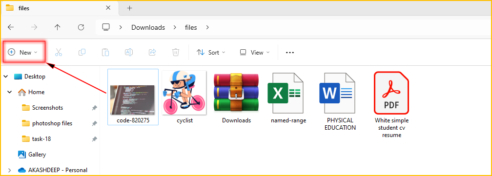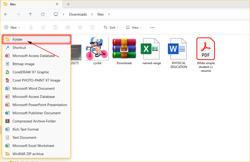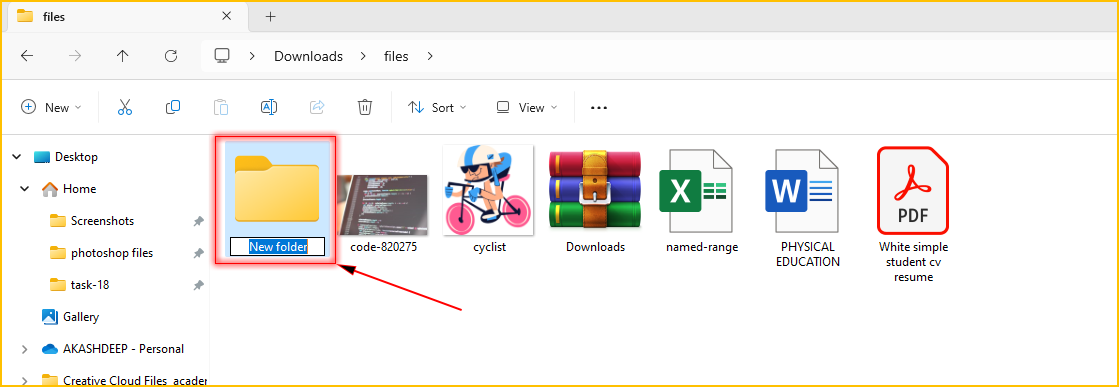 2. Press Ctrl + Shift + N. A new folder will be created instantly..