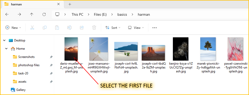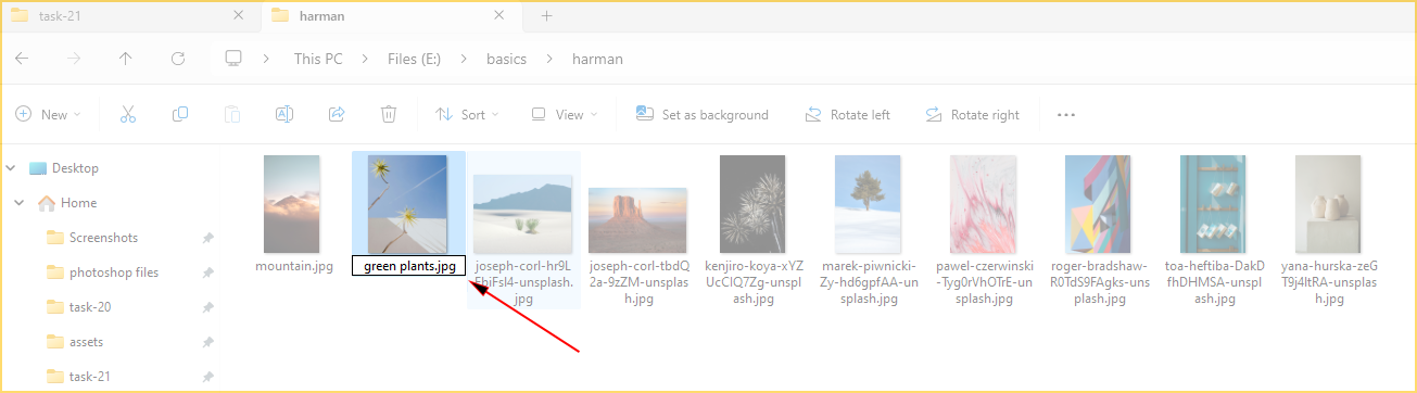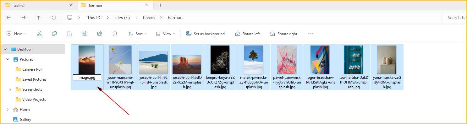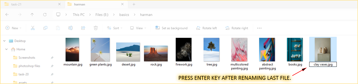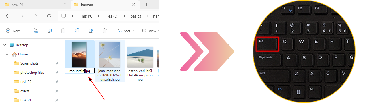 4. Type the new name for the first file & after typing, instead of pressing the enter key, press the tab key.