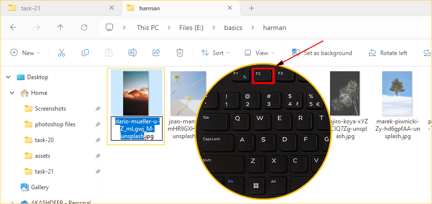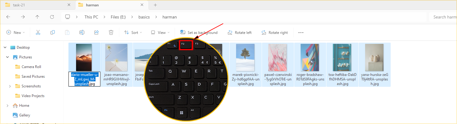 Note: By using the Tab key, you can efficiently rename multiple files without having to repeatedly click each file or press F2 for each one.