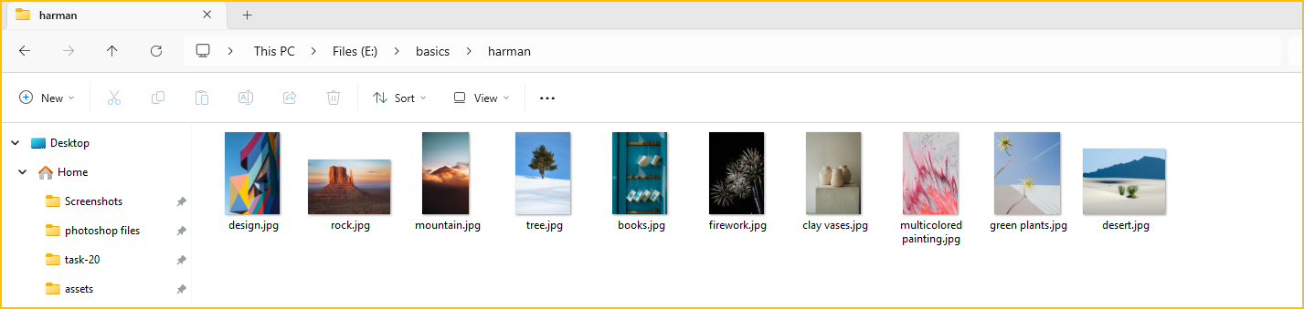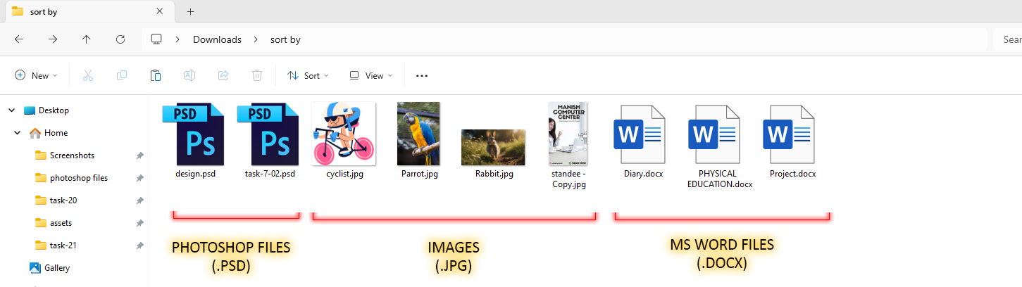 - The following is the view of the files that you will get after sorting by type.