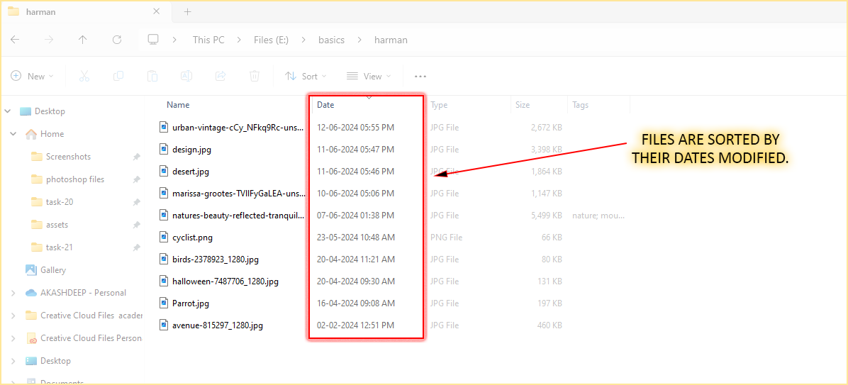(ii). Now we will sort the following files by date modified.